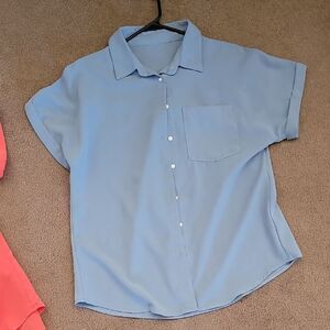 Womens Medium Coral and Blue Button-Up Blouse Shirt tops, Set of two