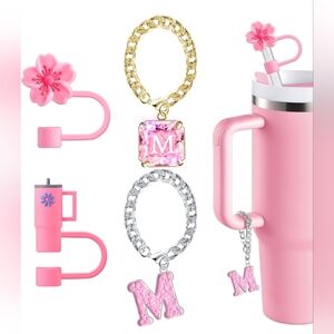 Pink Initial Set Of Straw Cover Accessories| Stanley Charms