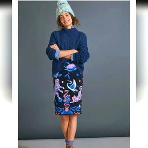 ANTHROPOLOGIE Super Nice Letters Julie Sweater Skirt Tiger Snake Crane XL