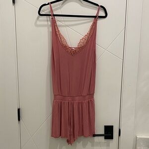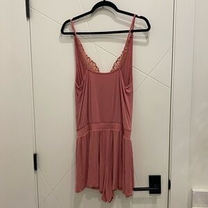 La Vie En Rose Dusty Rose Lace-Trim Romper Coquette Sleepwear Lingerie Set