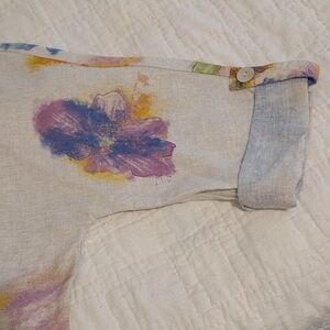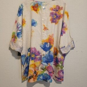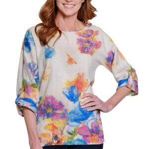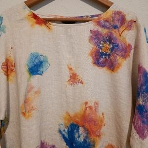 NWT Ali Miles Top Linen & Cotton Watercolor Floral Artsy Lagenlook Womens Large