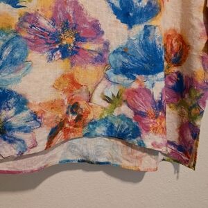 NWT Ali Miles Top Linen & Cotton Watercolor Floral Artsy Lagenlook Women's Large