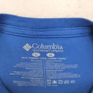 Columbia Short Sleeve Crew Neck Graphic T Shirt Mens Size Large L Blue
