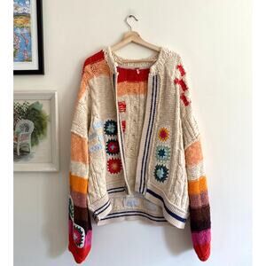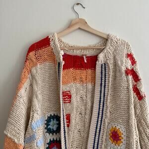 FREE PEOPLE Clear Skies Cardi Sweater in Cream Combo Size Large