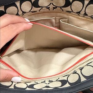 Coach Signature Canvas Zip Top Tote Black/Kahki Red Interior