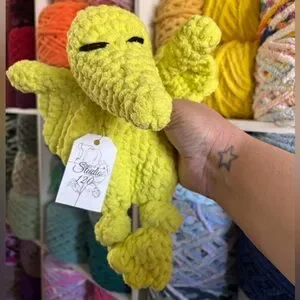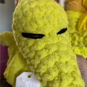 Handmade Crochet mini sparkle green dinosaur knotted lovey
