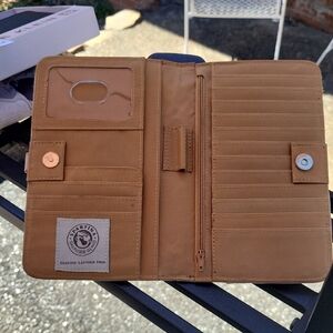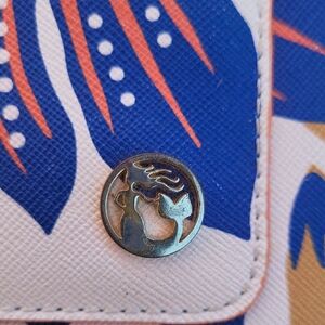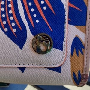 Stylish Spartina 449 wallet with vibrant floral design. Features blue and red flowers on a tan background. Secure button closure. Does have minor call outs as shown in pictures. No rips tears or stains. Please look at all pictures before bidding or buying. Always open to offers.
