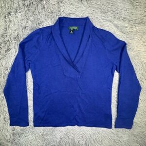 Ralph Lauren LRL Womens Large Royal Blue Cashmere Silk Shawl Collar Knit Sweater