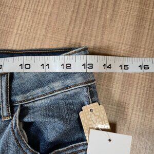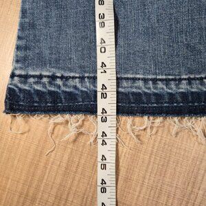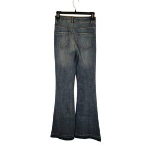 GB NWT Juniors Flare Leg Jeans Size 1 Blue Button Fly Raw Hem Bohemian Retro