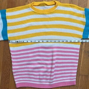 Colorful 80s Acrylic Striped Sweater Made in USA XS/S Crewneck Knit Pullover