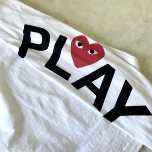 Comme des Garçons heart white red graphic Japan CDG T-shirt peeping eyes iconic