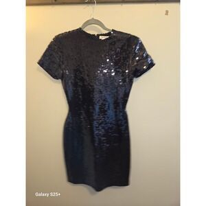 Ann Taylor Black Sequin Mini Dress Short Sleeve Cocktail Party Size 6