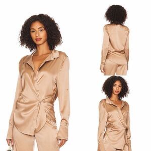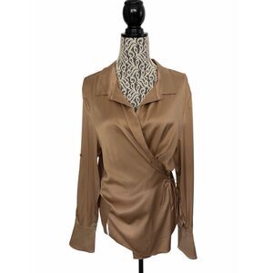 SER.O.YA Karry Silk Side Fasten Blouse in Natural Beige Size L