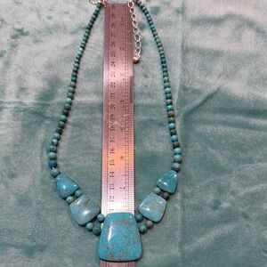 ✨ Details• Designer: Jay King / Desert Rose Trading• Genuine spiderweb turquoise stones• Graduated turquoise slab centerpiece design• Sterling silver clasp & extender chain (925 marked)• Approx. 18–20" adjustable length (see ruler photos)• Condition: New