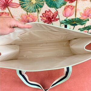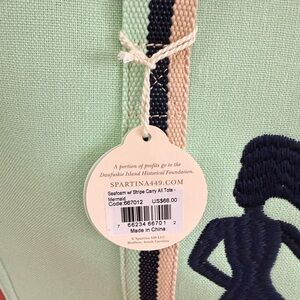 Elegant Spartina 449 tote in seafoam with a navy mermaid motif. Ideal for a stylish touch.