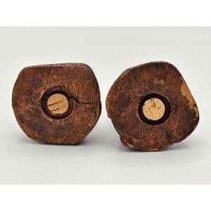 These vintage 1947 hand-painted wooden salt and pepper shakers feature intricate Native American designs and vibrant colors. A unique collectible from Lake Tahoe.