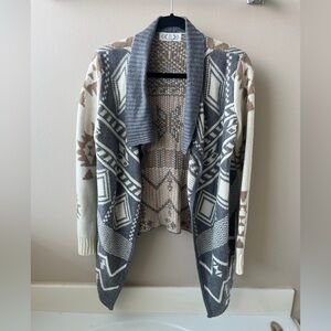 Pink Rose Open-Front Southwestern Cardigan in Gray, Cream & Brown- Size Medium
