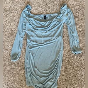 Cider Light Blue Ruched Long-Sleeve Mini Dress