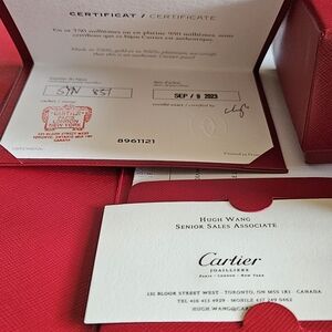 Sleek Cartier band in warm rose gold. Subtle channel-set diamond accents across the top. Polished finish with refined, minimal styling. Ideal for stacking or solo wear. I wore it just a couple of times, pristine condition, comes with original box, outer box, certificate, appraisal, copy of invoice. It was given as an anniversary gift, but it is too narrow for my hand.