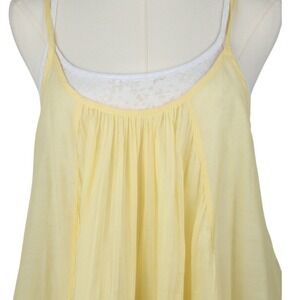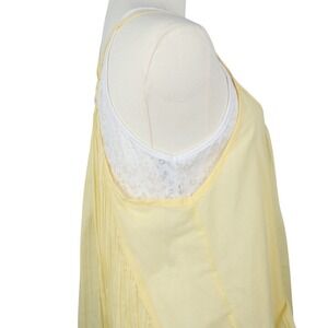 Lagenlook Yellow Pleated Sun Dress with White Floral Lace Slip Liner Set M/L