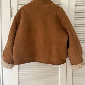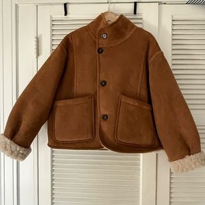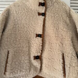 Reversible jacket with a high collar and long sleeves. Front pockets.