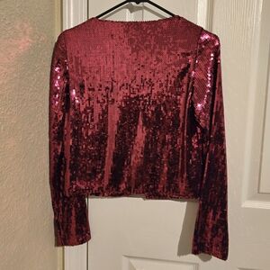Express Pink Sequin Tie-Front Top - Size XS