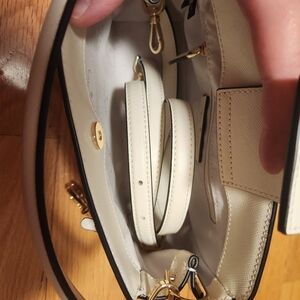 kate spade white top-handle bag with red heart accents