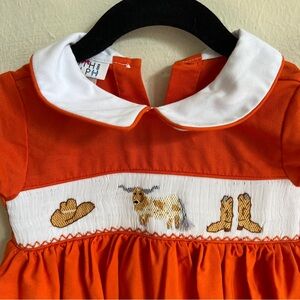 Ruth and Ralph Sz18m Baby Girls Orange Longhorn Smocked Embroidered Dress Sz18m
