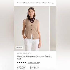 Quince Beige Mongolian Cashmere Sweater Vest