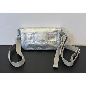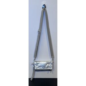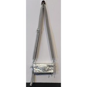 Kipling Lynne Convertible Metallic Silver Crossbody Clutch Wristlet Waist Bag