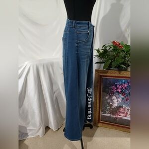 NWT The Adi Knit Mid-Rise Flare Jeans by Pilcro Size 33 In Frosted Blue Wash