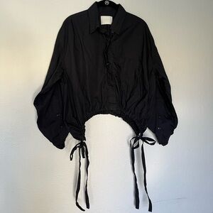 Cropped cotton button down w/ drawstring hem and adjustable side ties
