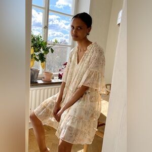 Floral BabyDoll Dress with Ruffle Sleeves Neutral Size XL Spring Easter
