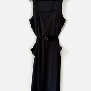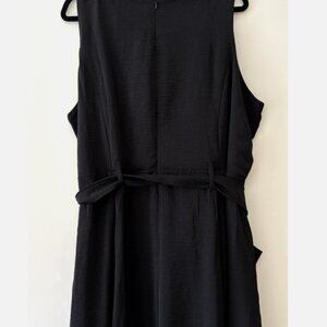 Chic Nina Leonard sleeveless dress in classic black, women’s size 2X, featuring a belted waist and convenient outside pockets. Designed for a flattering fit with a stylish silhouette, perfect for work, casual outings, or special occasions. Versatile and comfortable, this dress pairs beautifully with heels, flats, or layered with jackets.