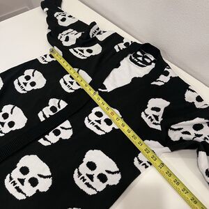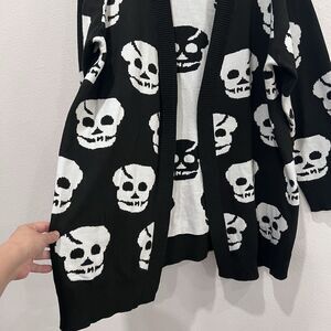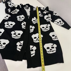Hotouch Women's Knitted Black and White Skull Open Cardigan Halloween size XL