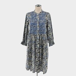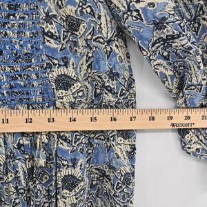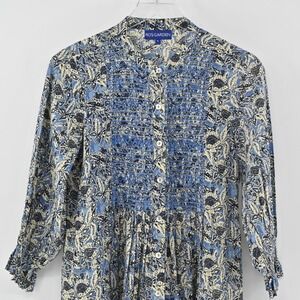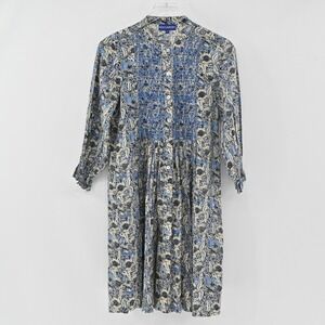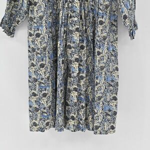 TUCKERNUCK Dress Women's Size Small Ro's Garden Floral Print Blue Embroidered Cotton Boho BohoChic Bohemian Vacation Travel Chic Casual Classic Festival Concert Resort Spring Summer Fall Relaxed Fit Comfort Lightweight Breezy Button Front Detail Peasant CottageCore Cottage Prairie Coastal