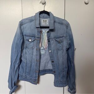 REVICE Light Blue Denim Jacket with Rainbow 'Dream State' Back Patch