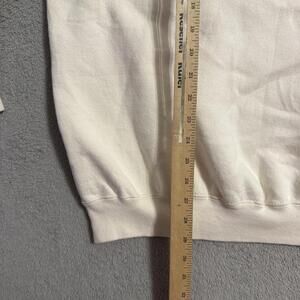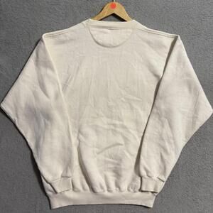 Made in USA, 80% cotton / 20% polyester blend. Classic holiday pullover in cream/white color.