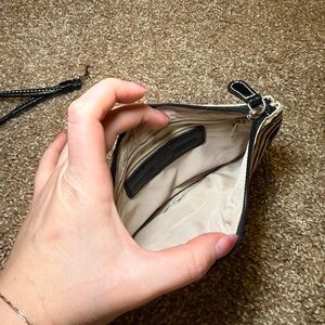 wristlet is good used condition, with minor signs of wear (a few marks on inside lining; some wear on wristlet handle) but overall great cosmetic condition on body of the wristlet. Wristlet handle detaches so it can turn into a clutch! Please message me with any questions or concerns before buying.