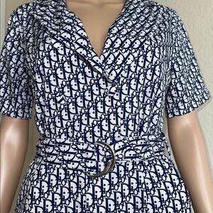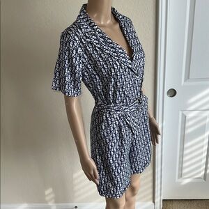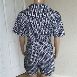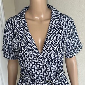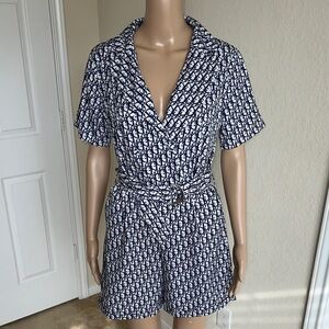 Navy & White Printed Wrap Romper with Belt Size Medium