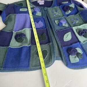 VTG April Cornell Cardigan Sweater Womens M / L Wool Knit Patchwork Embroidered