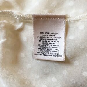 Armpit to Armpit: 17” Length (shoulder to hem): 21” Sleeve: 19” 55% Cotton 40% Nylon 5% Cashmere