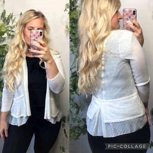Anthro Angel of the North Cashmere Blend Swiss Dot Tier Ruffle Cardigan Sweater