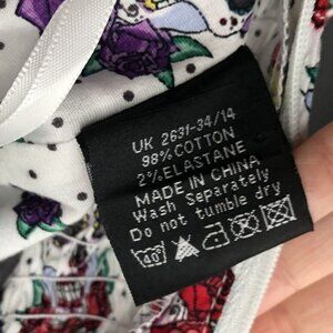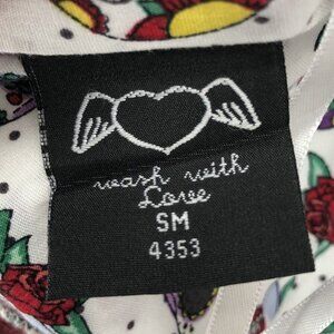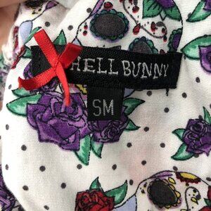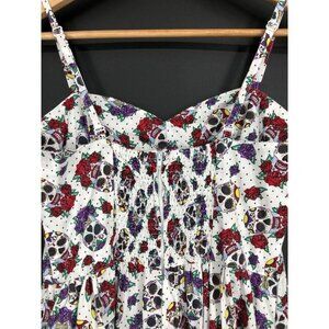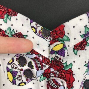 Hell Bunny Womens Sugar Skull & Roses Print Summer Dress S White Cute Goth