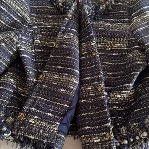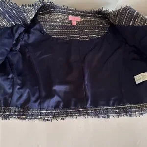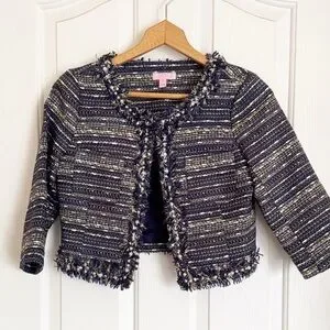 Lilly Pulitzer Hagen Metallic Navy Blue Tweed Cropped Blazer Jacket size 2