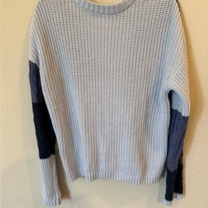 Stay cozy and stylish with this colorblock knit cardigan sweater. Featuring a blend of blue tones, this sweater is perfect for layering. The button-up design adds a classic touch to your wardrobe. Good pre-owned condition