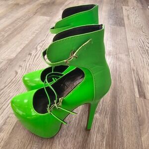 Ami Clubwear Neon Green Patent Leather Platform Pumps Triple Buckle Strap Heels