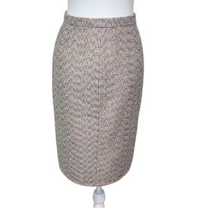 Chic pencil skirt with a sparkle tweed texture. Perfect for stylish occasions. blue , purple & gold. Full zipper. Stunning skirt that doesn’t show up well in photos.