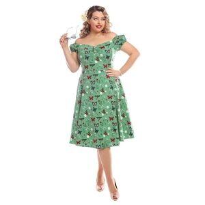 Collectif Green Butterfly Dolores Dress