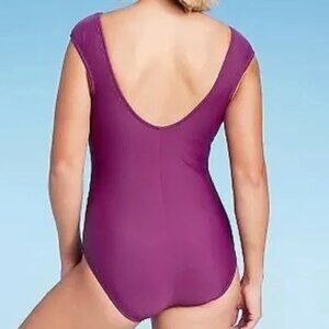 Shade Shore Purple Cap Sleeve One Piece Swimsuit M NWT